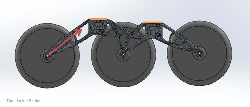The Thunderline Skates / Raiju frame is the result of a symbiosis between cutting-edge digital technologies and living human experience. We have joined forces with the best industrial partners to transform a digital dream into a flawless physical object.